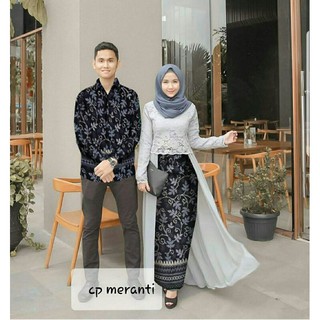Baju batik couple kemeja & kebaya brokat putih elegan, kebaya tunangan lamaran, wisuda,.